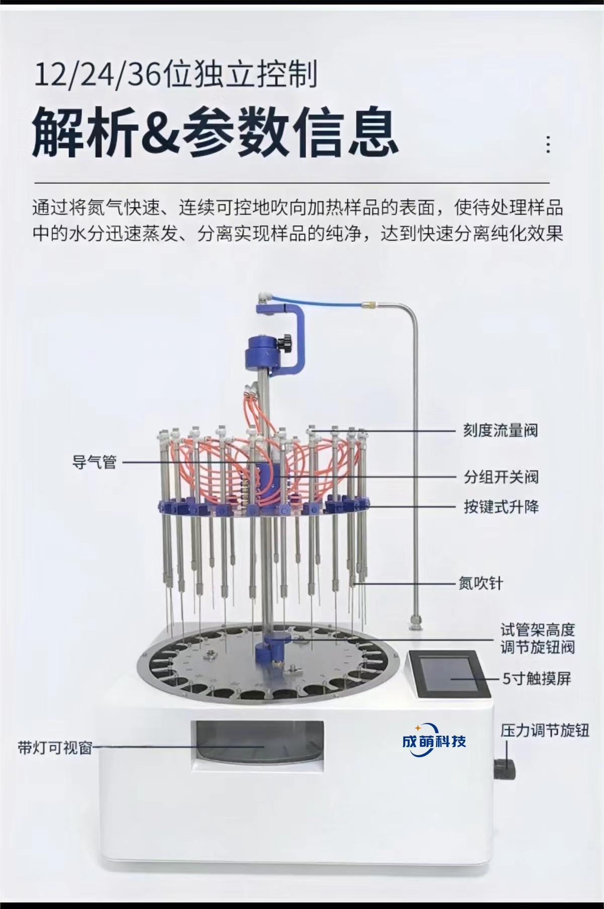 檢測方法 | CMDS系列智能水浴氮吹儀通過水浴加熱,并將氮氣吹入受熱后的樣品表面以達(dá)到快速濃縮的目的。CMDS系列采用5寸高清彩色觸摸屏控制,具備分組通道獨立控制功能、氮吹針一鍵式快速升降、無需提升樣品架即可觀測濃縮狀態(tài)等一系列性能優(yōu)勢,能令繁瑣的濃縮過程變得更智能、更高效。 |